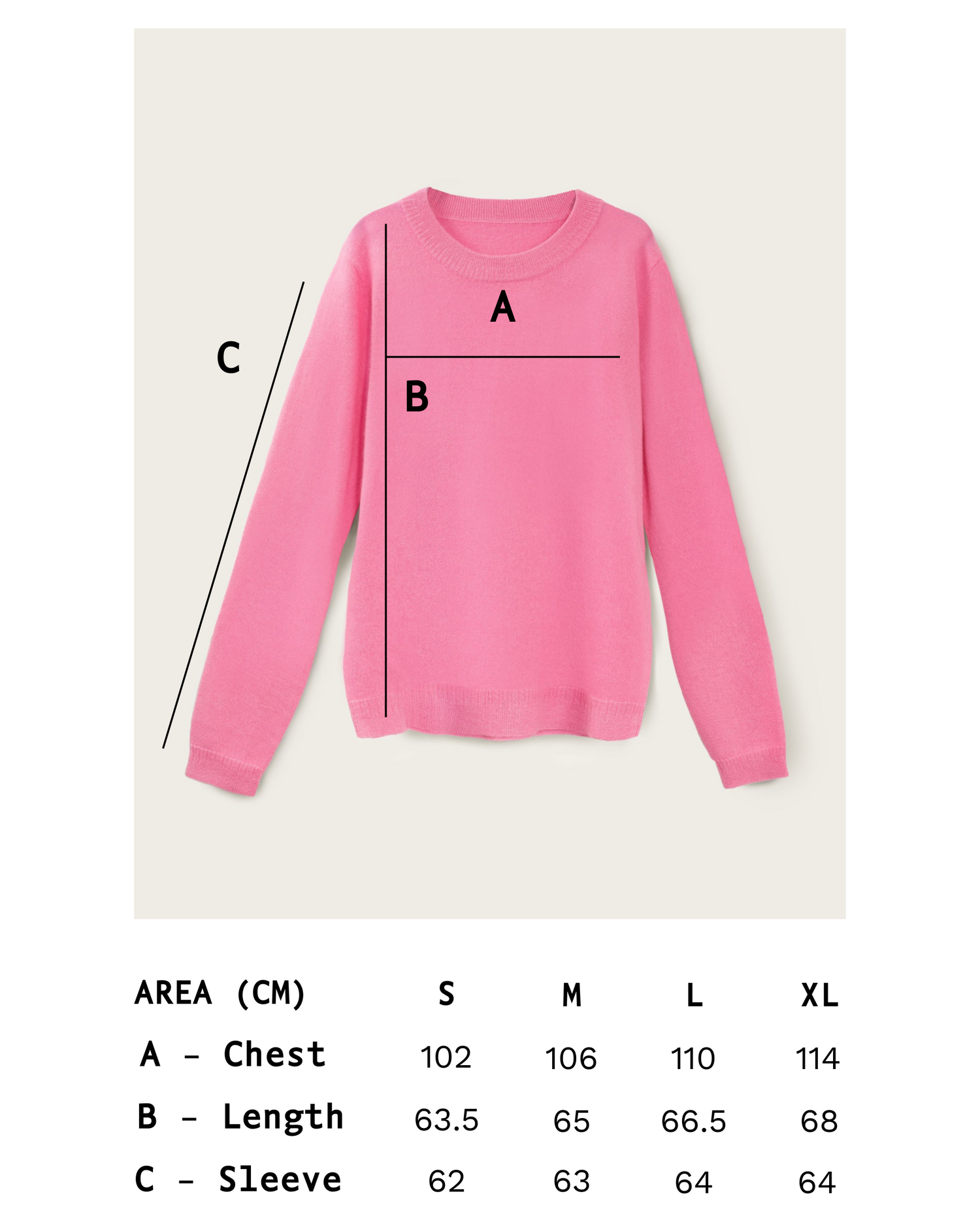 100% Grade A Cashmere – the longest and finest – with fibre diameter of 14-15.5 microns and a length of 34-36mm to give the softest feel. Baker Miller Pink super-spins the yarn to reduce pilling and ensure a sweater that will last longer and be loved all the more.