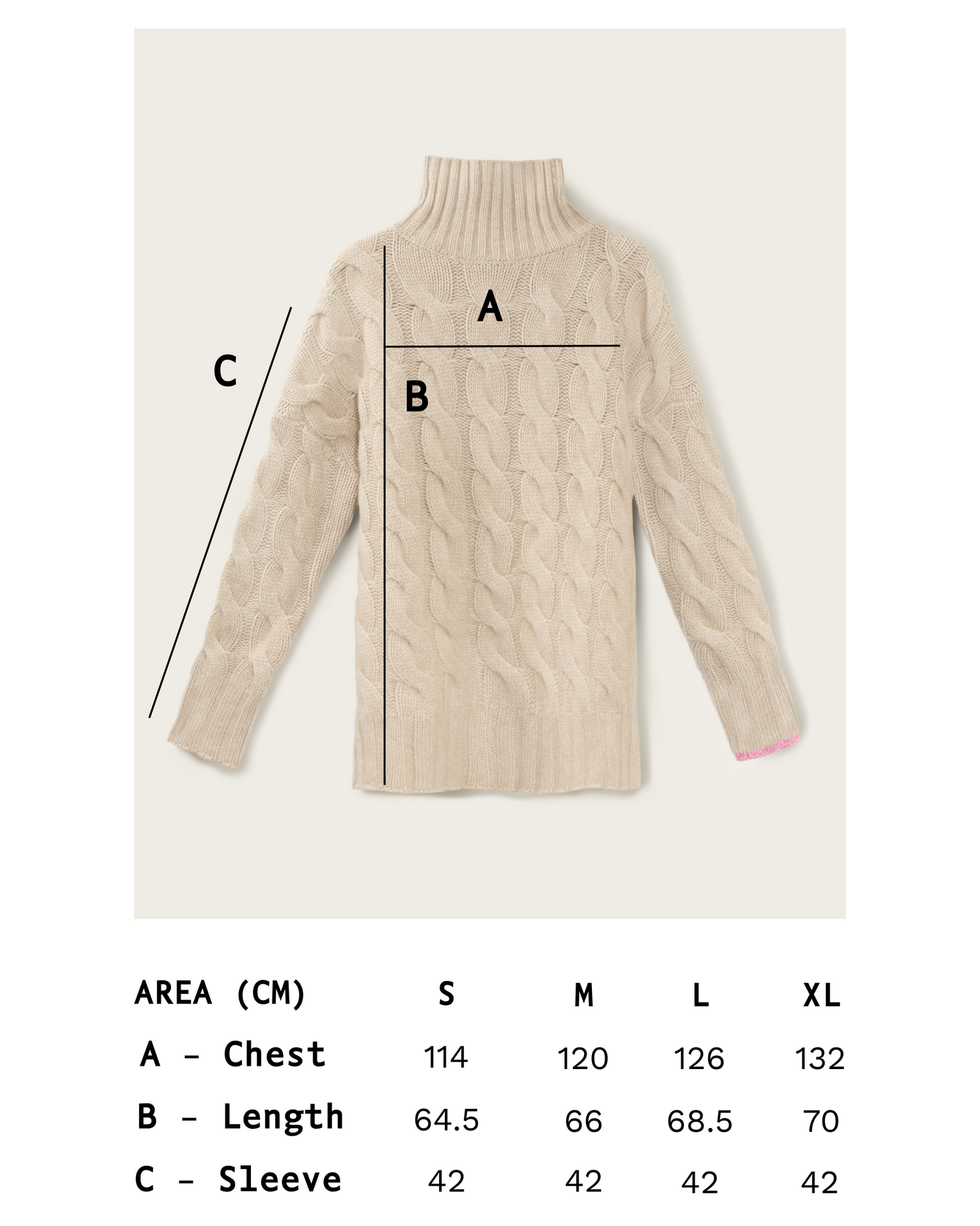 100% Grade A Cashmere – the longest and finest – with fibre diameter of 14-15.5 microns and a length of 34-36mm to give the softest feel. Baker Miller Pink super-spins the yarn to reduce pilling and ensure a sweater that will last longer and be loved all the more.