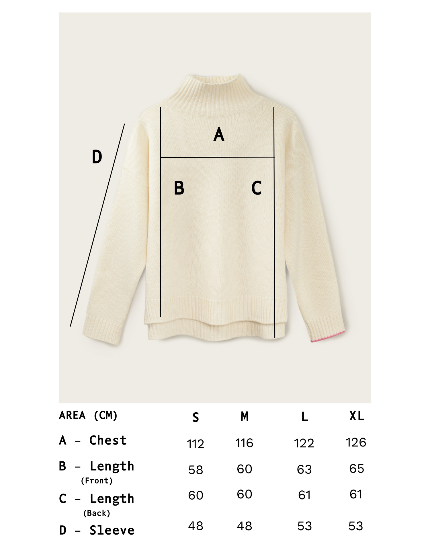 100% Grade A Cashmere – the longest and finest – with fibre diameter of 14-15.5 microns and a length of 34-36mm to give the softest feel. Baker Miller Pink super-spins the yarn to reduce pilling and ensure a sweater that will last longer and be loved all the more.