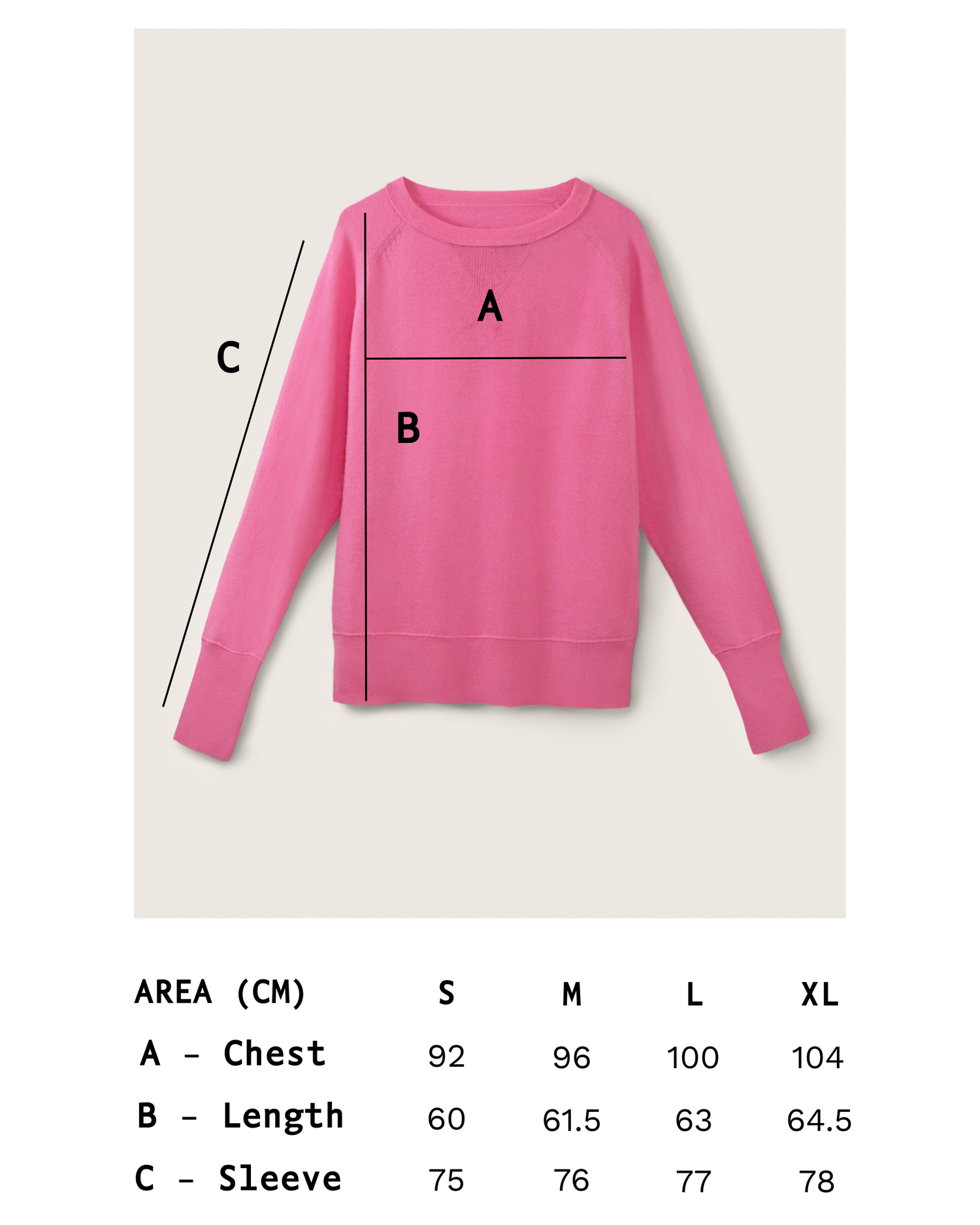 100% Grade A Cashmere – the longest and finest – with fibre diameter of 14-15.5 microns and a length of 34-36mm to give the softest feel. Baker Miller Pink super-spins the yarn to reduce pilling and ensure a sweater that will last longer and be loved all the more.