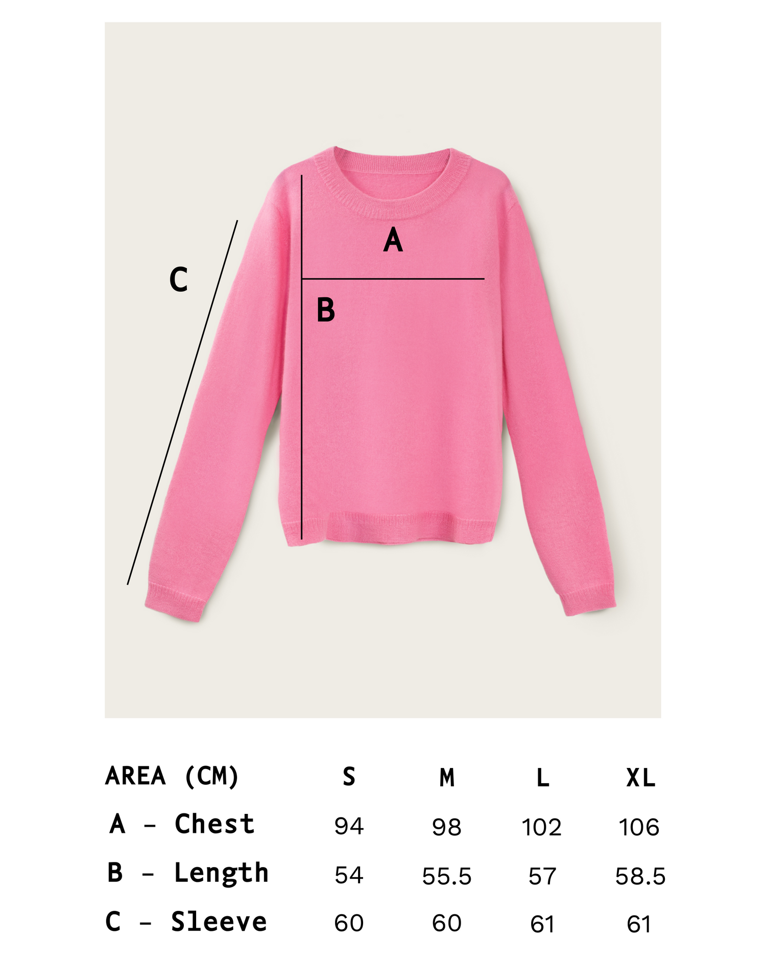 100% Grade A Cashmere – the longest and finest – with fibre diameter of 14-15.5 microns and a length of 34-36mm to give the softest feel. Baker Miller Pink super-spins the yarn to reduce pilling and ensure a sweater that will last longer and be loved all the more.